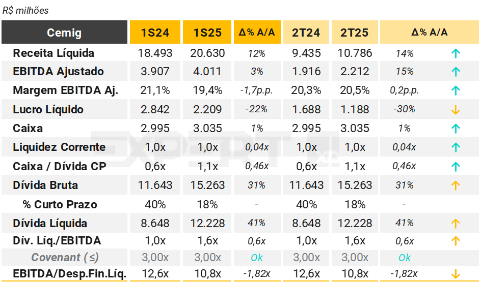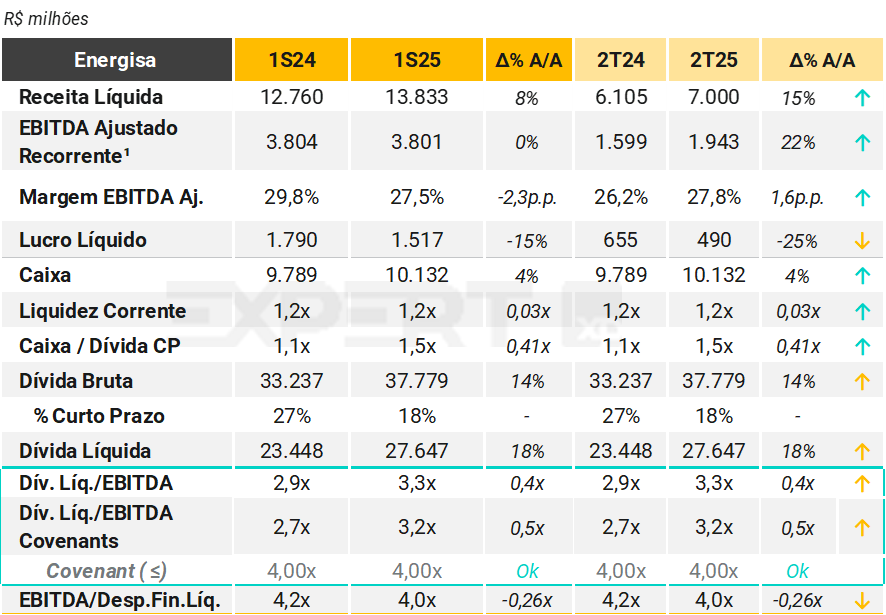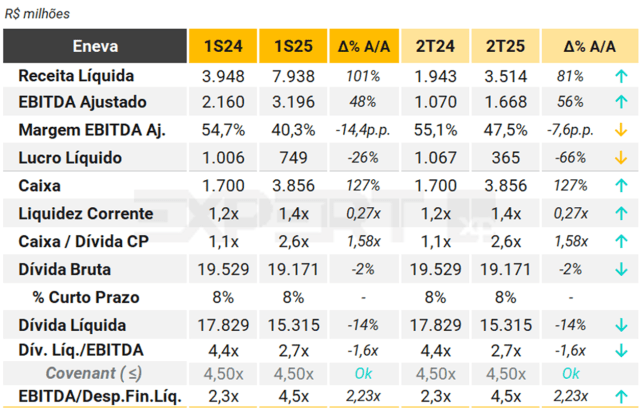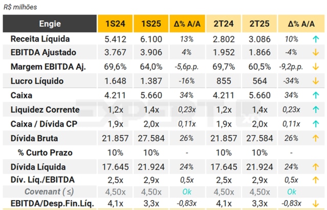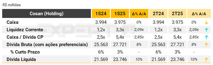 O caixa ao final de junho de 2025 era de R$ 1,44 bilhão, suficiente para cobrir os vencimentos de dívida de curto prazo e suportar os investimentos planejados, porém há risco de refinanciamento a partir de 2027.