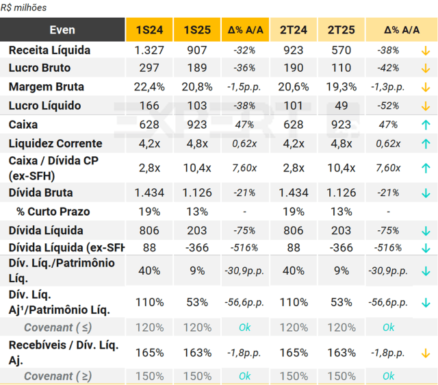 Embora as iniciativas de reorganização da companhia tragam perspectivas positivas de longo prazo, os resultados de curto prazo seguem pressionados. O lucro líquido acumulado no 1S25 foi de apenas R$ 12 milhões, bem abaixo do consenso de R$ 284 milhões para o ano, o que reforça o risco de revisões negativas nas estimativas de lucro.